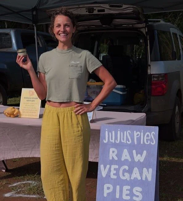We whip up the most irresistible raw pies using a heavenly blend of coconut cream, cashews, and dates, lovingly served chilled from the enchanting island of Kauaβi